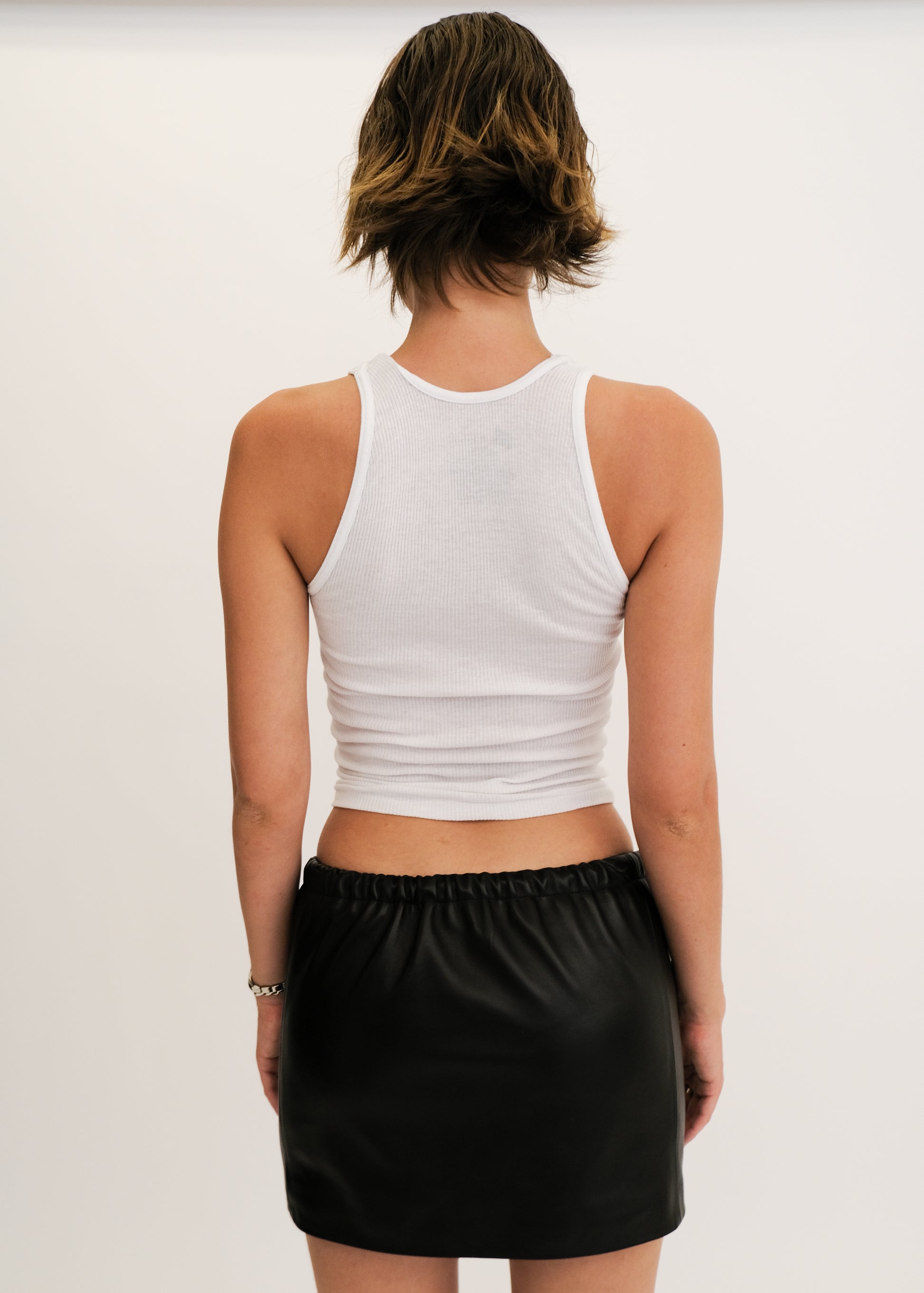 The Milo Leather Mini Skirt is made of lambskin leather, with stretch silk lining. Side panel detail. Intended to wear lower waisted, and this style will end at the higher mid thigh.